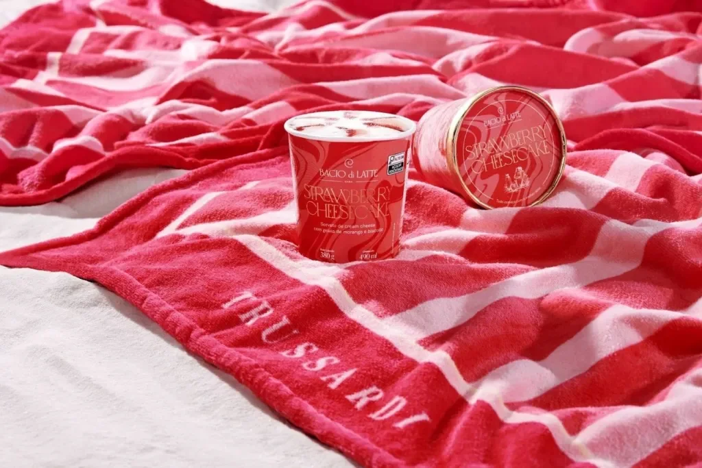 A iniciativa reúne a tradição e o design sofisticado da Trussardi — reconhecida por seus enxovais de luxo e identidade italiana clássica — com a delicadeza e o charme da Bacio di Latte, gelateria premium que conquistou o Brasil com seus gelatos.